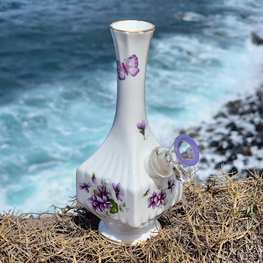 "Vivacious Violet" Ceramic Upcycled Vase Bong with Gilded Details
