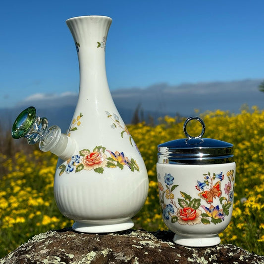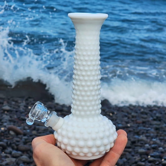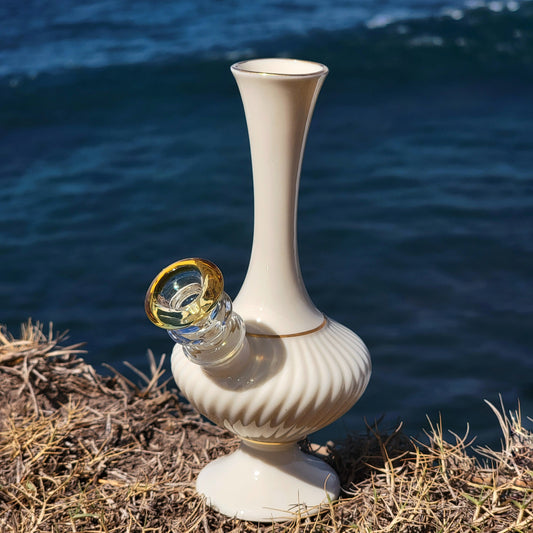 Each piece is one-of-a-kind, even if it’s not vintage. These contemporary bongs are handpicked vessels given new life as functional upcycled water pipes.
