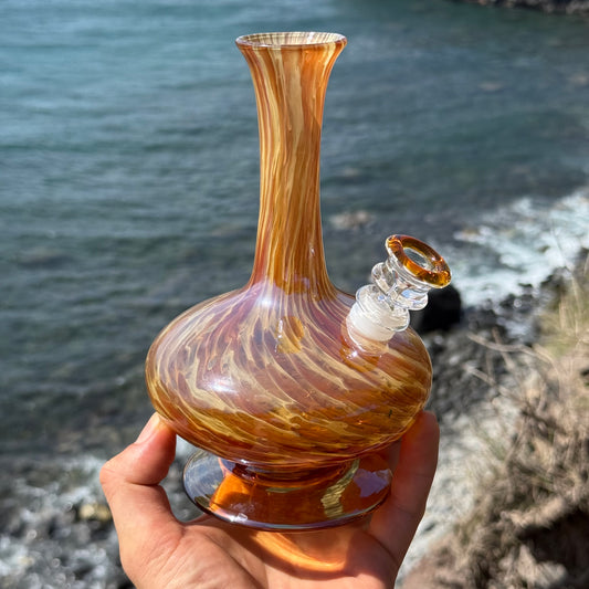 The most varied of the whole catalogue, these upcycled vintage glass bongs come in a range of sizes textures and colors.