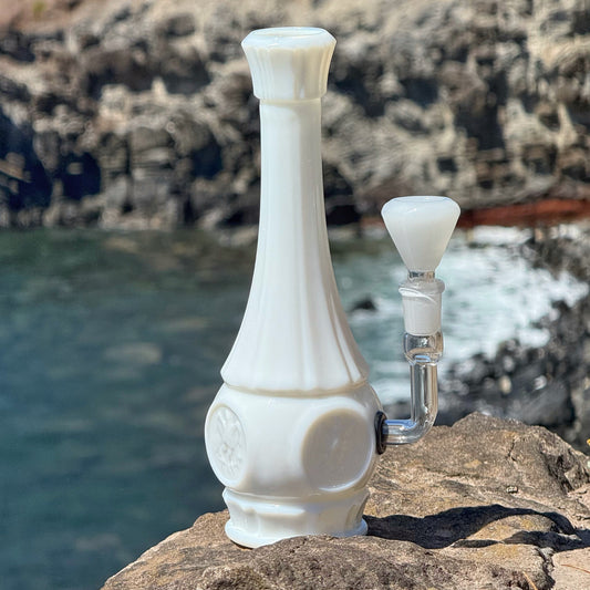 Pressed Glass, Empoli, milk-glass in these pieces. Each upcycled glass water pipe is one-of-a-kind, functional, and unmistakable.