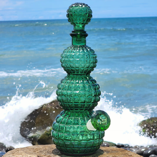 "Emerald Excellence" Vintage Upcycled Quilted Glass Vase Bong